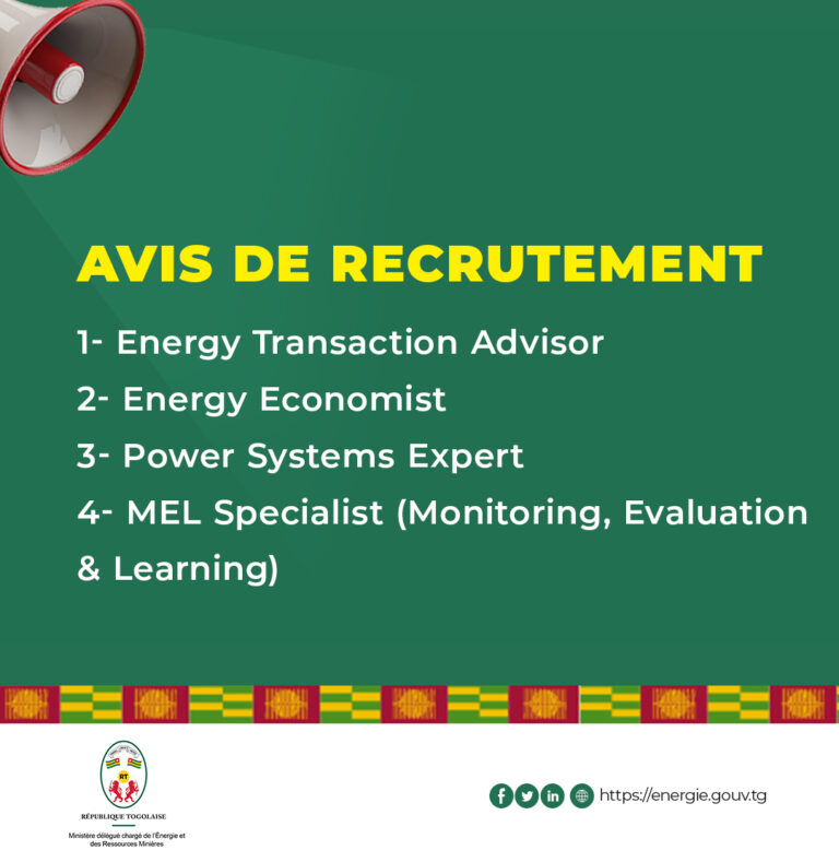 Le Gouvernement de la République Togolaise, à travers son Pacte National Énergie, lance un appel à candidatures pour le recrutement…