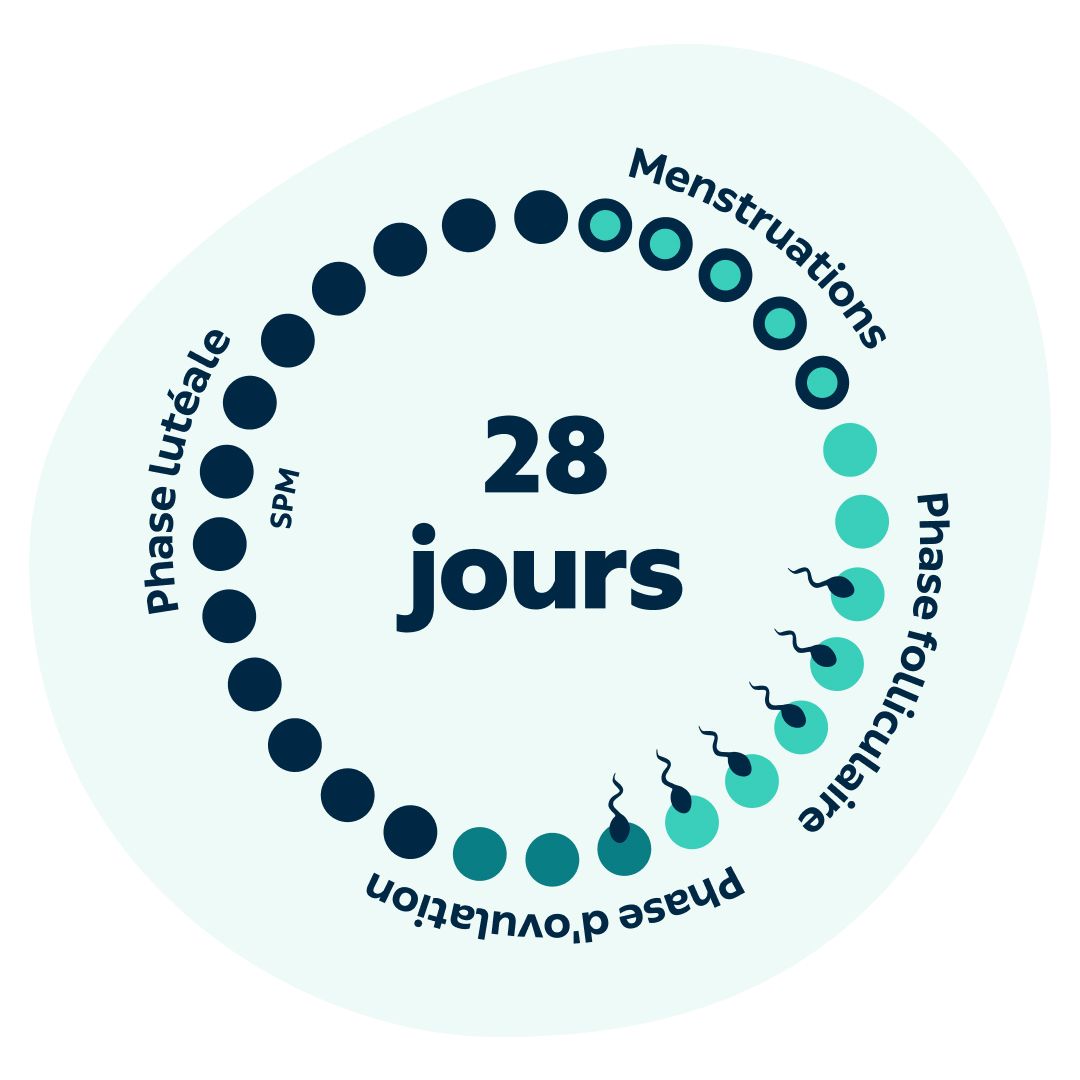 Il se divise en plusieurs phases. La phase menstruelle (du 1er au 5e jour) correspond aux règles, période d’élimination de la muqueuse utérine. Vient ensuite la phase folliculaire (jusqu’au 13e jour), où les ovaires préparent un ovule. L’ovulation survient autour du 14e jour : l’ovule est libéré et c’est la période la plus fertile. Enfin, la phase lutéale (du 15e au 28e jour) prépare l’utérus à accueillir un embryon. Si la fécondation n’a pas lieu, les règles reprennent et un nouveau cycle commence.