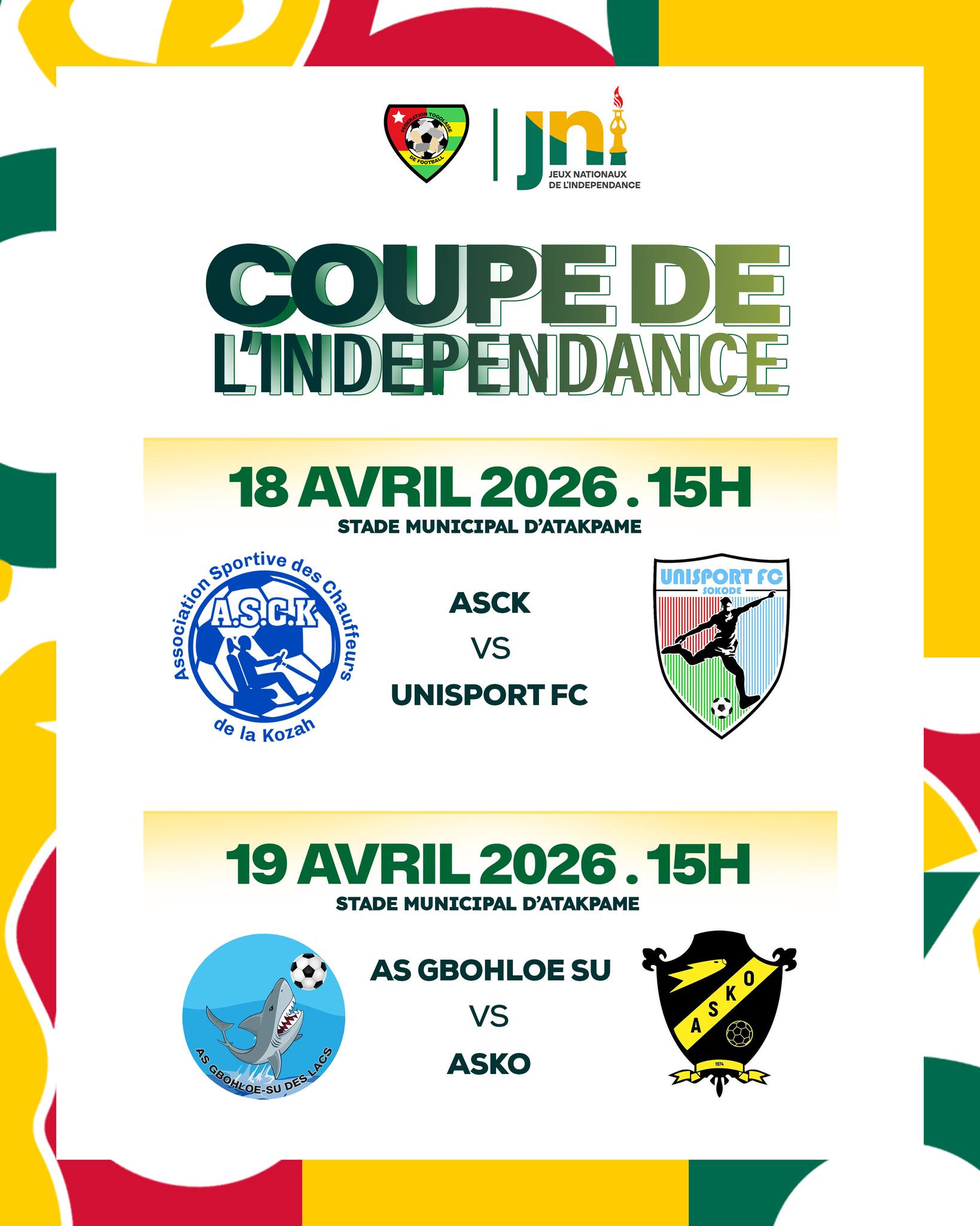 Le Togo innove : la traditionnelle Coupe de l’Indépendance est remplacée par les Premiers Jeux Nationaux de l’Indépendance, avec des demi-finales de football déjà programmées. Cette initiative vise à promouvoir le sport sur l’ensemble du territoire et à renforcer la dynamique nationale.