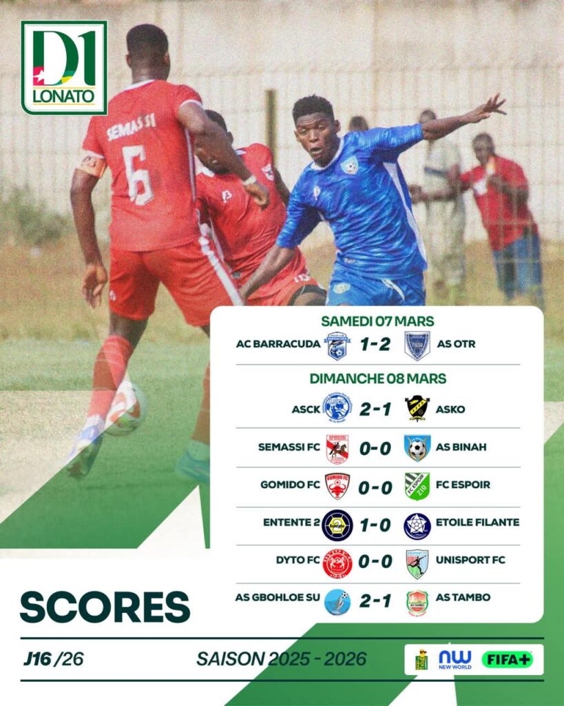 La 16ᵉ journée du championnat national de première division, D1 LONATO, s’est disputée ce dimanche et a tenu toutes ses promesses. Les différentes rencontres ont offert un spectacle riche en intensité, confirmant certaines dynamiques et bouleversant d’autres certitudes.